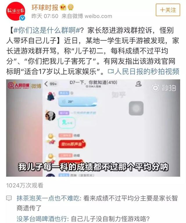 此前,微博上一段“家长冲进游戏群大骂”的视频引发了全网热议。