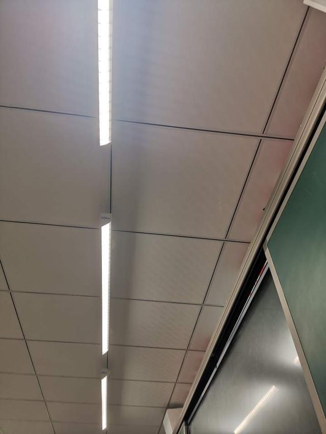 目前安装完毕的是每间教室有9盏智能护眼灯,内嵌在焕然一新的吊顶内。护眼灯采用的是全光谱光源,这种光接近自然光,拥有无频闪、无蓝光、无眩光等特点。同时护眼灯共有“上课”、“自习”、“投影”和“放学”四种模式,老师们可以根据上课需要进行模式切换。无论是黑板,还是学生的课桌桌面,有了护眼灯的“加盟”,光照度和光线均匀度都有了极大的改善,降低了孩子们用眼疲劳的问题,提升了师生的上课质量。