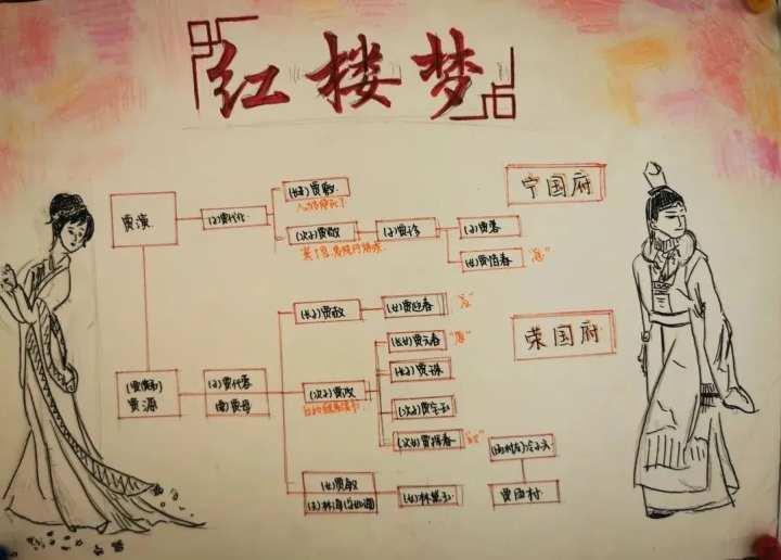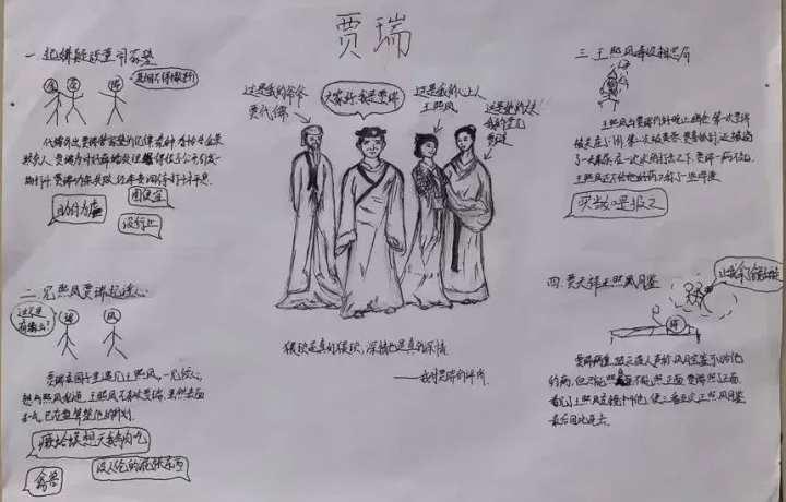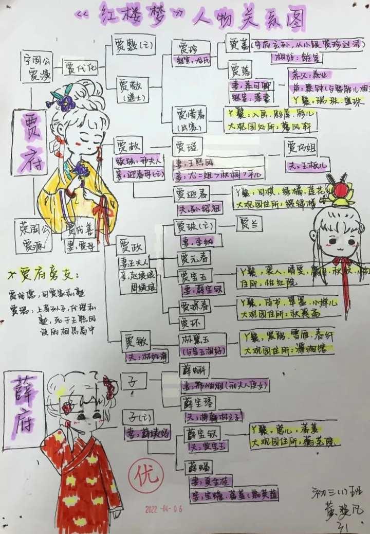 《红楼梦》的人物关系庞杂,故事意蕴深厚,语文组教师决定分三个阶段,让学生先后绘制不同主题,这项作业持续了近一个学期。
