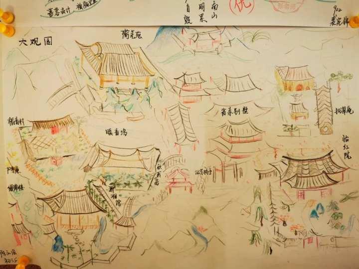 第二阶段的作业是依据第三回“林黛玉抛父进京都”“大观园试才题对额”,绘制贾府布局图或大观园全景图,作业安排在五一假期完成。