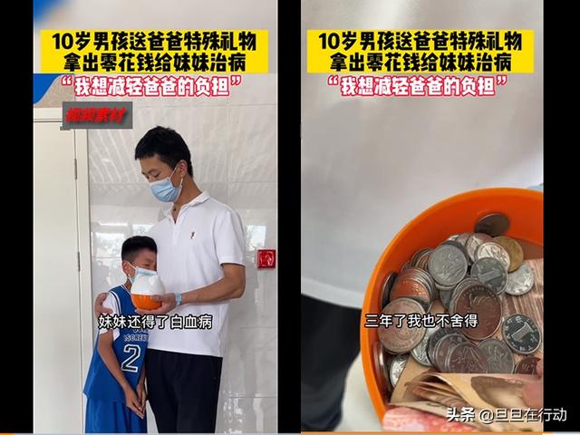 河南郑州一10岁男孩送给爸爸一份特殊的父亲节礼物:把攒了三年的零花钱全部拿了出来,给患白血病的妹妹治病,希望妹妹的病能早点好起来,早点回家,同时也希望能减轻爸爸的负担。心中有暖,又何惧人生荒凉,点滴温暖都值得大步向前。孩子,你真的很棒!