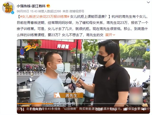 刚看到一则新闻,浙江杭州的蒋先生,向某节目组求助,想要退回为女儿报训练营的23万元。