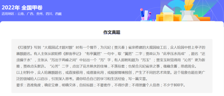 “难”上热搜的《红楼梦》,在杭州初中生笔下长这样钱江晚报·小时新闻记者沈蒙和戴欣怡今年高考作文一出炉,最受瞩目的要数全国甲卷《红楼梦》材料作文:不少网友表示,如果没有认真读过《红楼梦》,第一反应大多是懵的。全国甲卷因此“难”上微博热搜:不过...